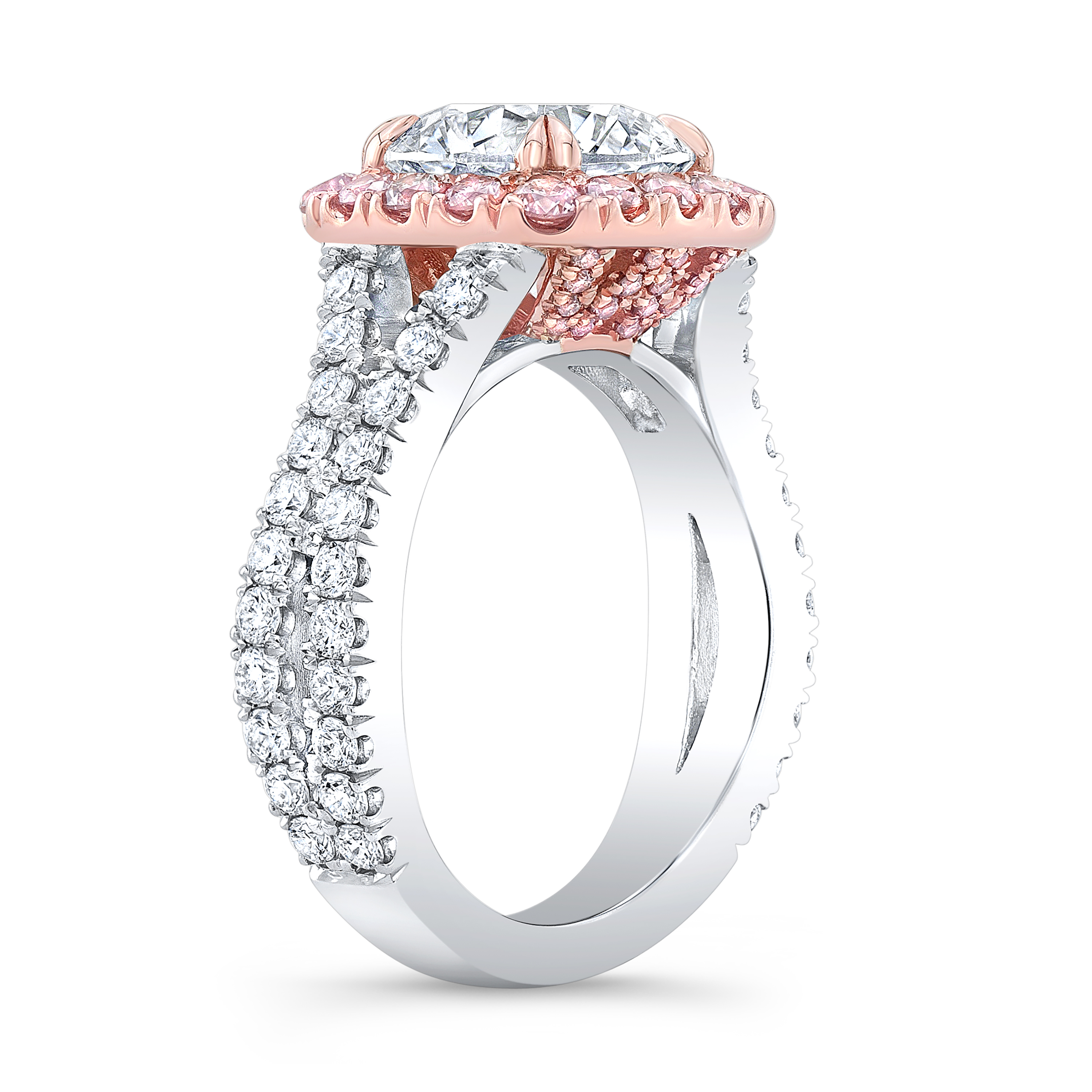 2 Ct. Round Cut Natural Diamond Pink Halo Curved Split Shank Engagement Ring (GIA Certified)